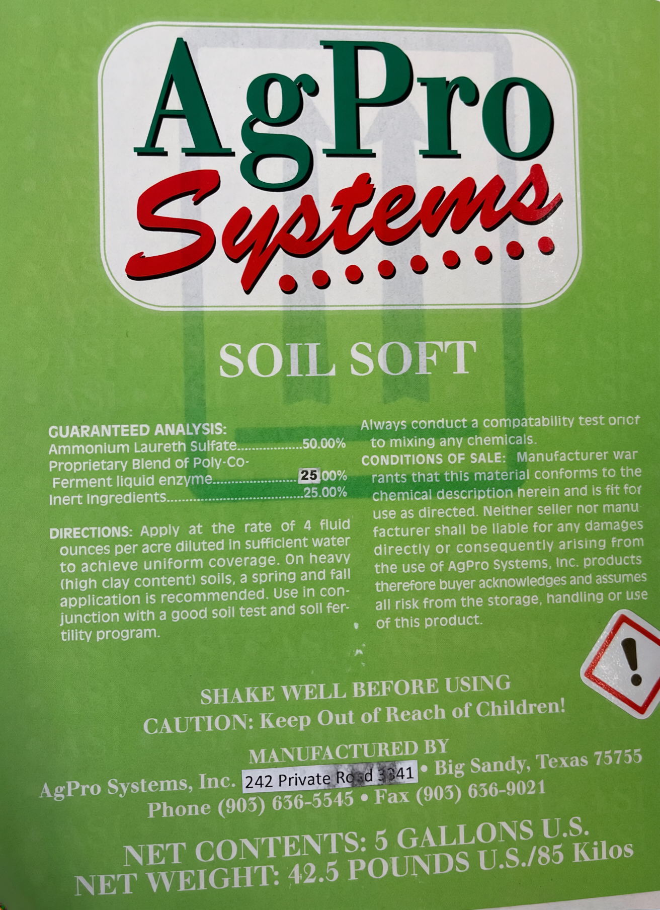 Soil Soft is a powerful soil penetrant designed to open up tight, compacted soils and improve water movement through the entire profile. It contains a high concentration of Ammonium Laureth Sulfate (50%), giving it aggressive water-penetrating ability, along with enzyme complexes (25%) that boost microbial activity and help release bound nutrients. Regular use improves infiltration, reduces standing water, and allows applied fertilizers to move more evenly into the root zone.